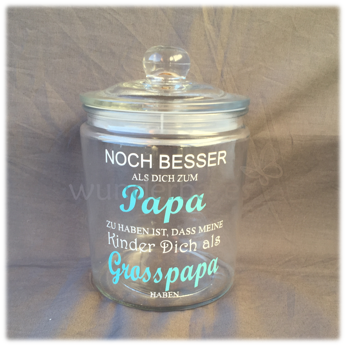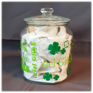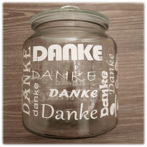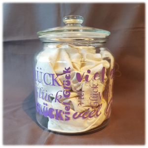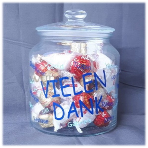 Dekoratives Vorrats-Glas zum Befüllen und Verschenken; selbstverständlich mit Deiner Wunschbeschriftung.